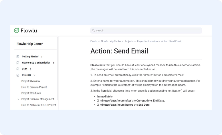 Lua CRM also includes built-in automation. Instead of handling every step manually, you can set up simple rules to send follow-up emails, create tasks, or move deals through stages when certain conditions are met. This reduces repetitive work and helps maintain a consistent process.